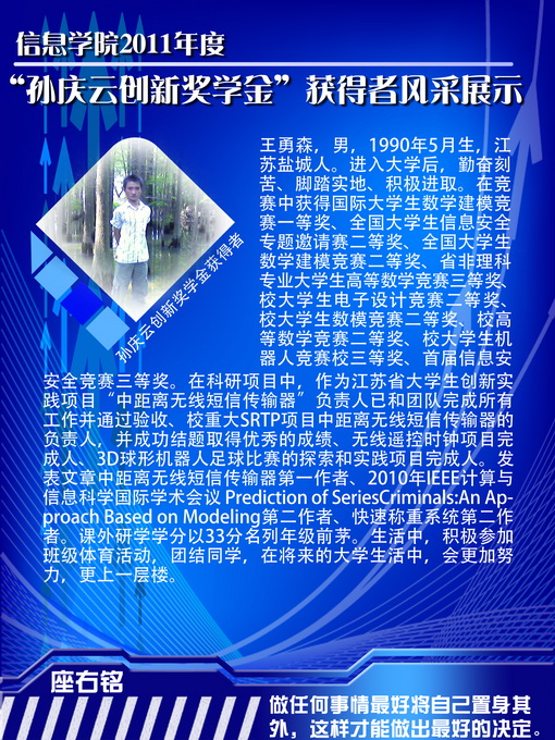 2011年度“孙庆云创新奖学金”获奖同学风采展示