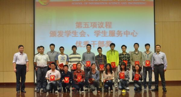 昨天的润良报告厅格外庄重,各位领导、嘉宾以及340位代表济济一堂,在庄严的国歌声中,新葡萄8883官网AMG第二十七次学生代表大会拉开了帷幕。首先,新葡萄8883官网AMG副院长孟桥教授致辞,充分肯定了新葡萄官网学生会的工作,提出了对新葡萄官网科技协会的希望和要求,并和孙威书记一起为科技协会揭牌。接着,首届科技协会主席王嘉频作了新葡萄8883官网AMG科技协会工作展望。然后,由信息学院团委书记王婧菲老师宣读了《第二十七届学生会、学生服务中心主要干部任命决定》。随后,第二十六届学生会主席邱旻翔同学上台作第二十六届学生会工作报告,报告对去年一年的院学生工作作了总结,并对今年的工作作出规划,明确今年学生工作的主要目标。在代表们鼓掌通过第二十六届学生会工作报告之后,校团委文体部部长凤启龙老师、新葡萄官网副院长孟桥教授和党委副书记兼副院长孙威老师为“优秀学生干部”颁奖。