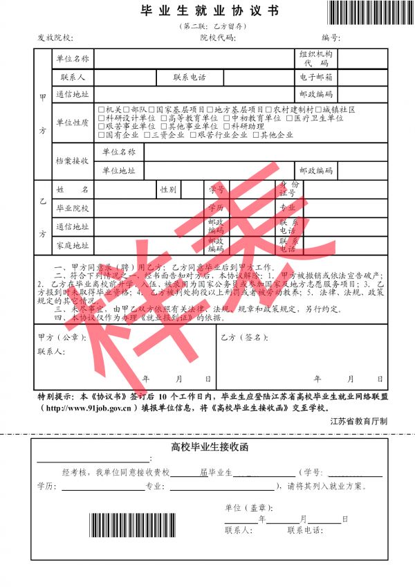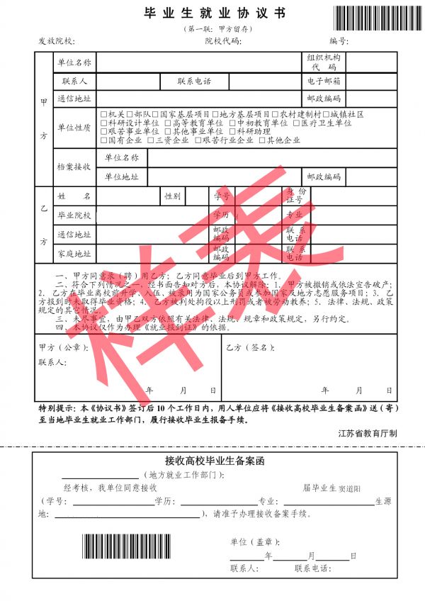 毕业生就业协议书样表