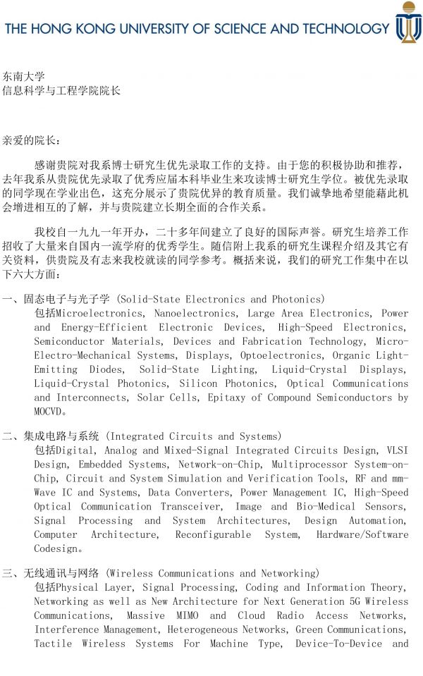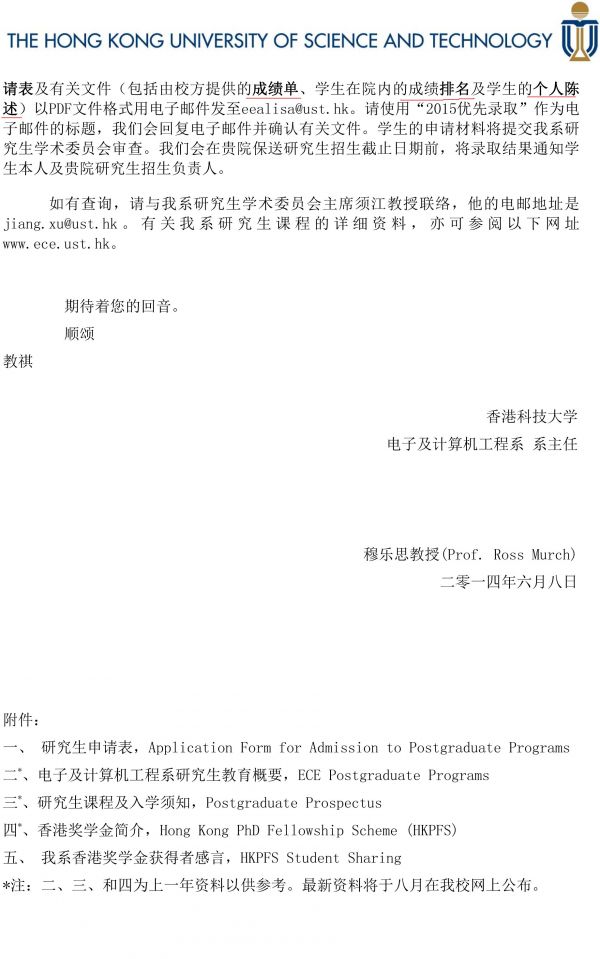 香港科技大学拟从新葡萄官网招收两名博士研究生(10级喻翔昊、赵立成两位同学获得此名额),学院共有4名推荐资格,着重给符合条件且非常想去港科学习的同学,有意向报名的同学请于8月11日中午12点之前发送短信“学号+姓名+联系方式”到手机号13912955258,其余资料已于6月份传至年级QQ共享群,也可到香港科技大学网站去了解。报名结束后,学院将根据报名情况进行选拔。