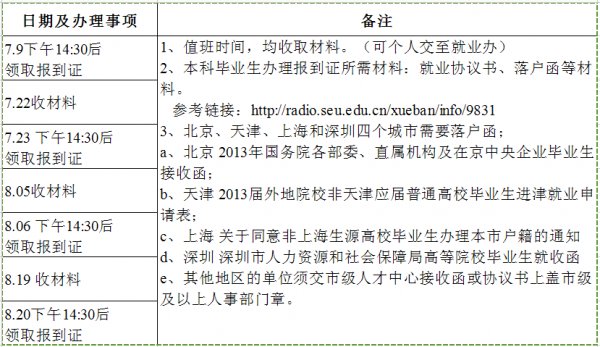 部分同学如需暑假至就业办开具报到证,请参考此链接将相关材料在值班时间内直接交至就业办http:/xueban/info/9831。如领取报到证,请在值班时间内领取(注意:报到证下方的白联需放在档案袋里,请将白联留给就业办,或咨询清楚,是否需要自己送交档案馆)。