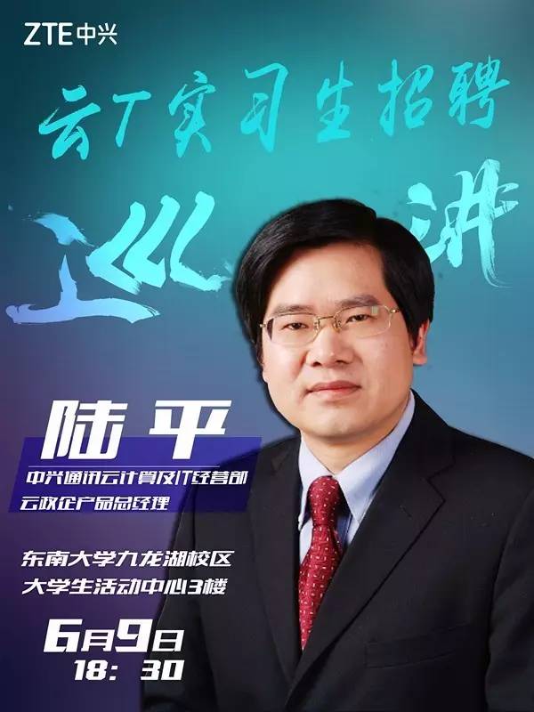 第二波机会来了!6月9日晚18:30东大九龙湖大学生活动中心324报告厅,新葡萄8883官网AMG信息学院杰出校友、中兴通讯云计算副总裁陆平总带你继续开启提前批,走近云计算。