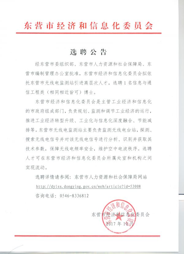 【招聘信息】山东省东营市经济和信息化委员会选聘公告