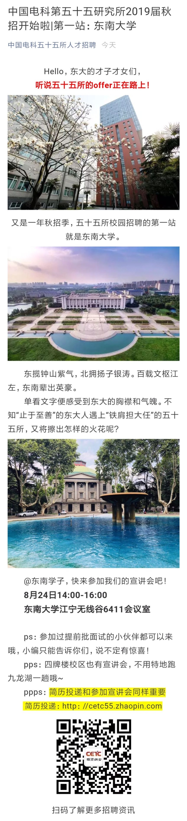8月24日(周五)下午2-4点,无线谷6411会议室,研究生可携带个人简历前往。